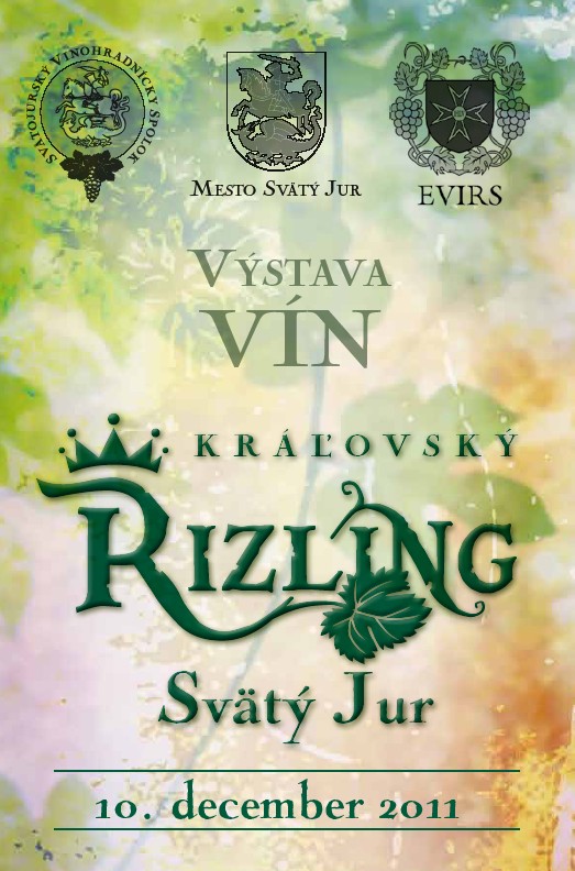dovoľujeme si Vás pozvať do súťaže 3. ročníka medzinárodnej výstavy hroznových vín Kráľovský rizling – Svätý Jur 2011, venovanej špeciálne odrode Rizling rýnsky. Bude nám potešením, ak aj vzorka Vášho rizlingu obohatí výstavu, ktorá chce prezentovať širokú škálu rozmanitostí a podôb vín tejto jedinečnej odrody. V prípade, že máte záujem zúčastniť sa tejto výstavy za podmienok, ktoré určuje štatút, potvrďte, prosíme záväzne Váš záujem e-mailom najneskôr do pondelka 28. 11. 2011 s uvedením počtu a špecifikácií údajov Vašich vzoriek vína.