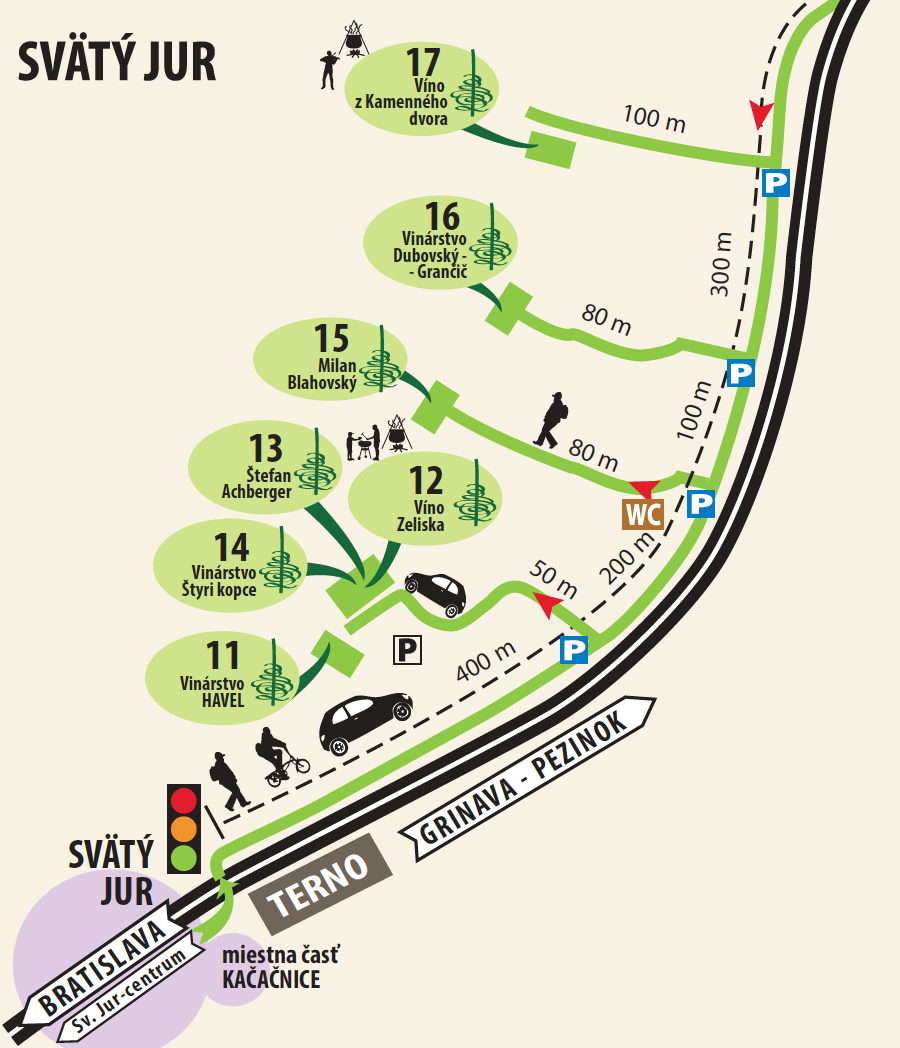 Vynoveným klimatizovaným retro busom vás privezieme z centra mesta do kráľovského slobodného mesta Svätý Jur. Otvorené pivnice miestnych vinárov, označené viechou, sú viac ako príjemným miestom pre priateľské posedenie po náročnom týždni. Je na vás, či sa usadíte pri jednom stole, alebo sa rozhodnete vinárstva vystriedať. Miestni vinári vám osobne ponúknu to najlepšie, čo sa urodilo v tunajších vinohradoch.
