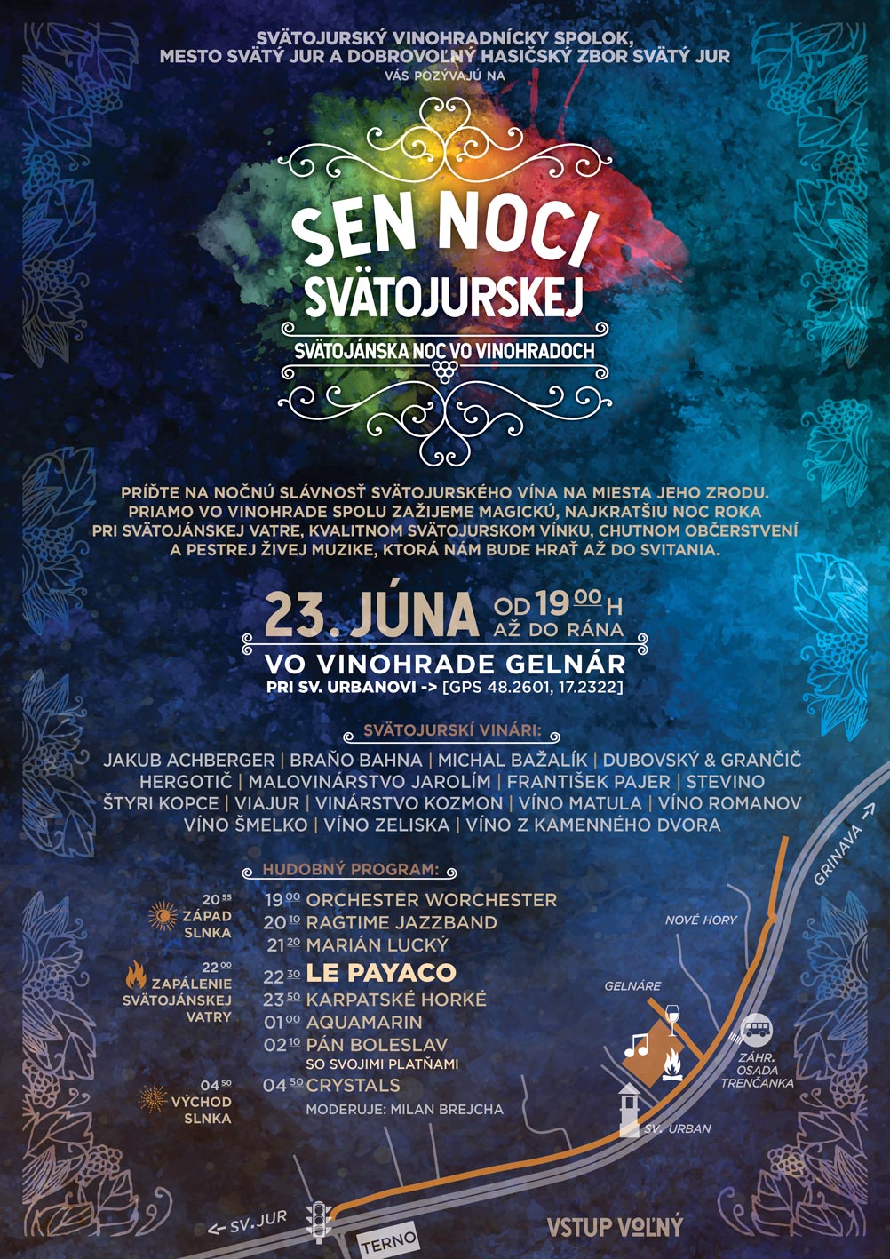 Svätojurský vinohradnícky spolok, Mesto Svätý Jur a Dobrovoľnícky hasičský zbor Svätý Jur vás pozývajú na SEN NOCI SVÄTOJURSKEJ – svätojánsku noc vo vinohradoch.
