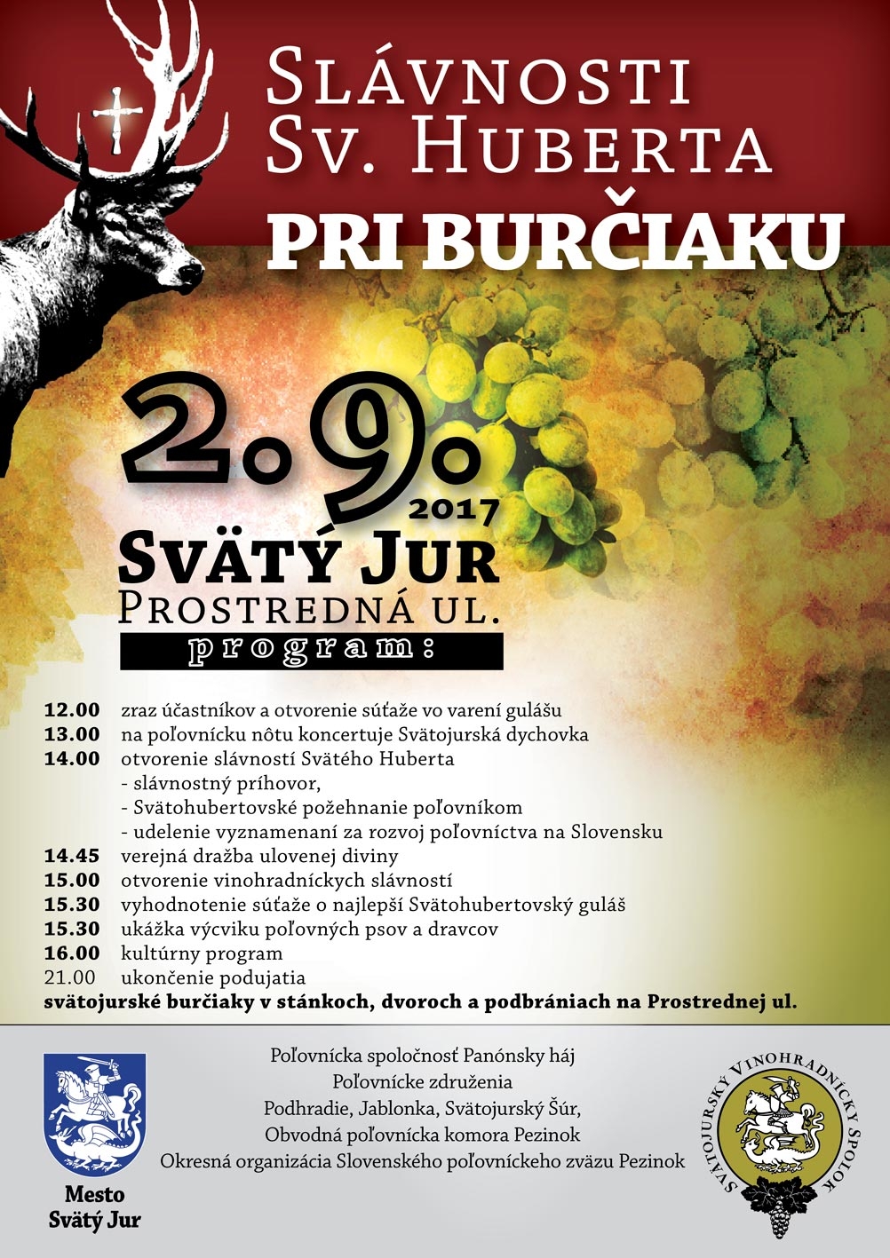 Svätojurský vinohradnícky spolok a Mesto Svätý Jur Vás pozývajú na súťaž 27. ročníka svätojurskej výstavy vín Kráľovský Rizling Svätý Jur 2017. Táto výstava patrí medzi nominačné výstavy Národného salóna vín SR a je zameraná na odrodu Rizling rýnsky, ktorej pestovanie má vo Svätom Jure dlhodobú tradíciu a obľúbenosť. Podrobné informácie pre účastníkov sú v štatúte nižšie.