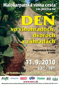 Na 11. 09. 2010 v čase 13:00 až 19:00 sme pre milovníkov dobrého vína pripravili 2. ročník Dňa vo vinohrade, kde Vás malokarpatskí vinári nepozvú do pivnice, ale do vinice. Práve v tento deň budete mať ojedinelú možnosť ochutnať víno a zároveň hrozno, z ktorého bolo vyrobené. Spoznáte vinice Malokarpatského regiónu Gelnar, Nové Hory, Škridlák, Žabky, Hundspalek, Fertále, Ivetu a Zoyu…. Čítaj viac