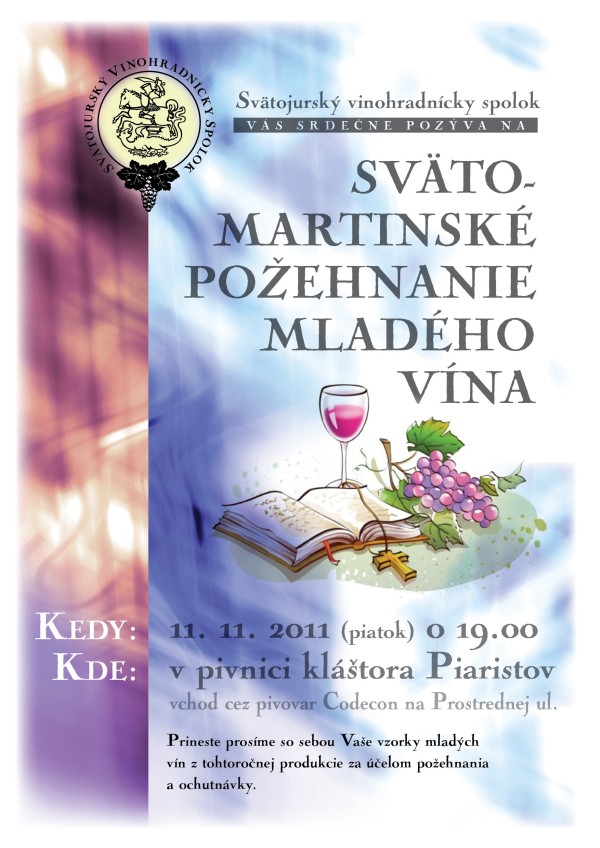 12.11.2010 sa v priestoroch Templárskej pivnice Piaristického kláštora uskutoční Svätomartinské požehnanie mladého vína.
